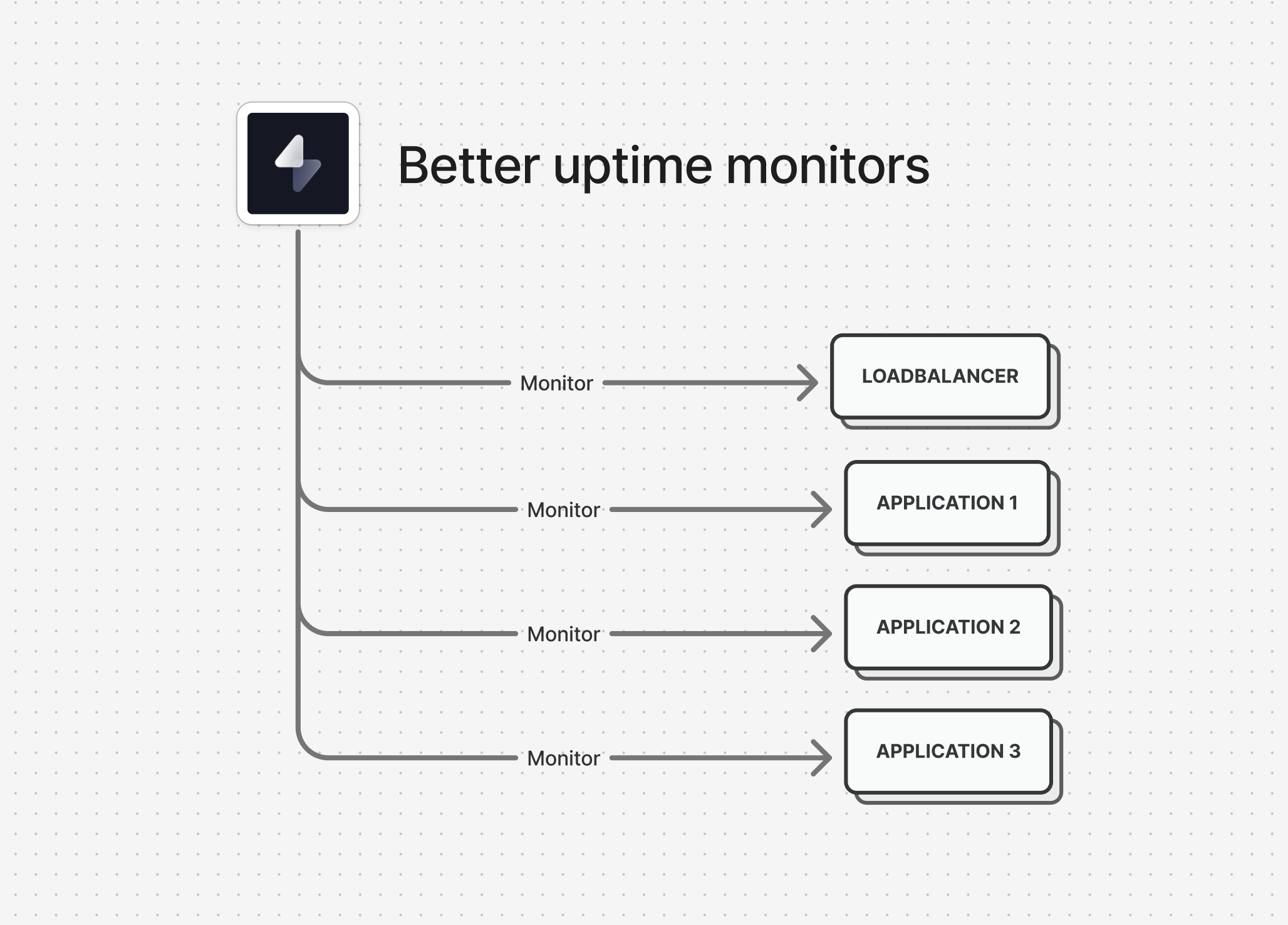 Now, we monitor all of our infrastructure components using BetterUptime - that's our 3 application servers plus our load balancer. If one of our app servers goes down, it's not ideal, but it's not an emergency. We have redundancy there. But our load balancer? That's our single point of failure. When that goes down, everything goes down.